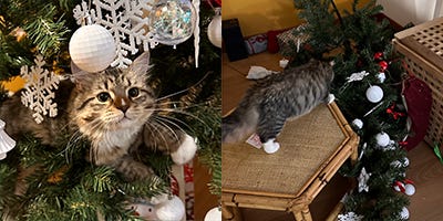 Now I bought a lighter replacement treeâthat I can move on my ownâand we decorated together: me, the hubby, our son, and Sofia. Itâs Sofiaâs first Christmas and sheâs a tree enthusiast. And yes, the tree has already suffered a few mishaps courtesy of her paws, but itâs all part of the holiday spirit.
